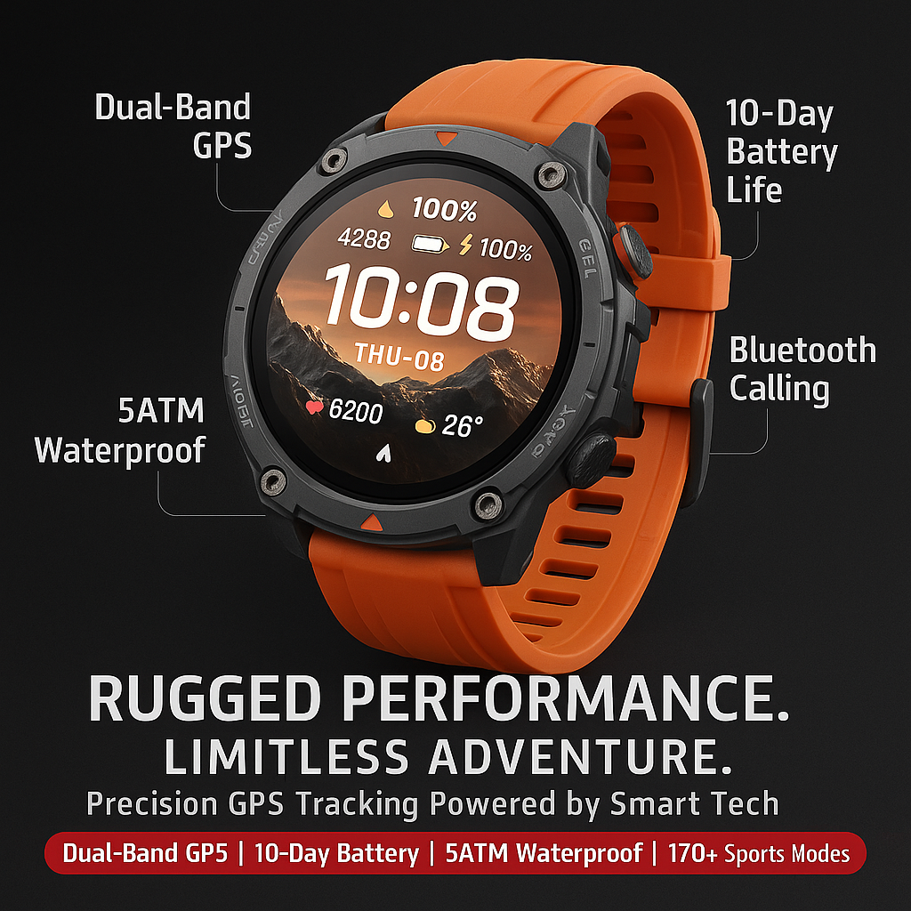 Conquer every terrain with the TrailCore GPS Smartwatch – your all-in-one companion for outdoor exploration, fitness tracking, and everyday convenience. Engineered for durability and precision, it’s built to perform in the toughest conditions while keeping you connected, informed, and on track.
